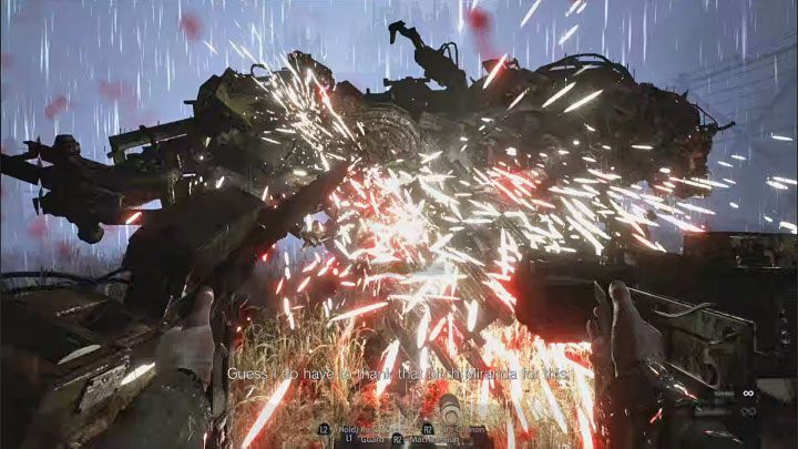 보스를 쏘느라 바쁘지만 당연히 그의 공격을 염두에 두어야합니다. L1 / LB 버튼을 길게 눌러 활성화 된 가드 기능을 최대한 활용하세요 . 전기 톱 공격도 활성화됩니다. 이런 식으로 보스의 전기 톱 공격을 차단할 수 있습니다.