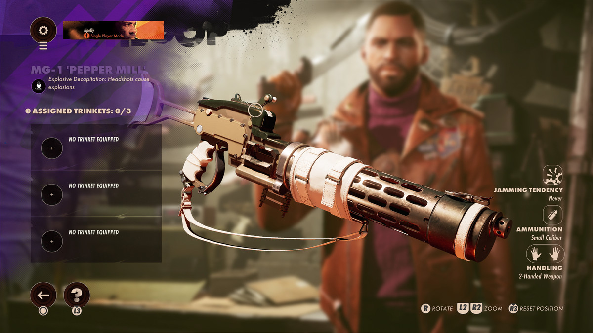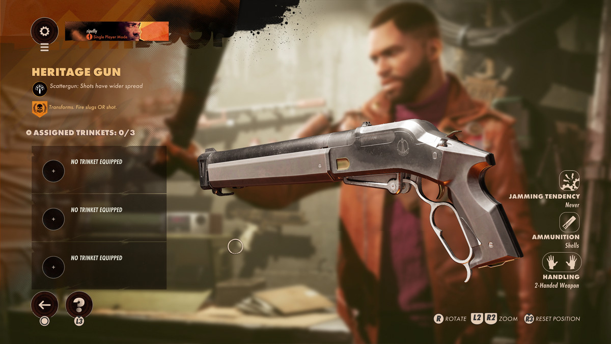 Deathloop 에서는 오른손에 항상 총이 있고 컨트롤러의 오른쪽 방아쇠가 그 총을 발사합니다. 하지만 왼손에는 더 많은 일이 있습니다.