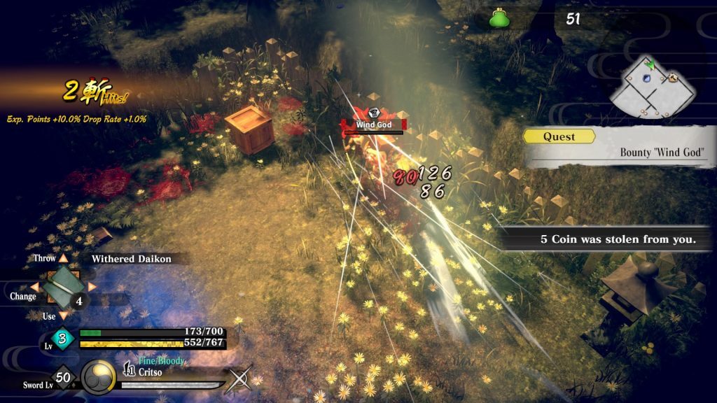 나는 Katana Kami: The Way of the Samurai Story 를 컴팩트하게 묘사하고 싶습니다. 게임 세계로의 확장은 거의 없지만 전투 내에서 깊이를 제공하고 던전 밖 시간을 제공합니다. 당신은 성공으로 가는 길을 무모하게 해킹하고 슬래시할 수 있지만 시스템에 대한 많은 강조가 있으며 이 모든 것이 핵심적인 역할을 합니다. 당신의 검은 사용을 통해 레벨이 오르고, 나이가 들면서 전투에서 시도할 추가 움직임을 얻습니다. 당신은 막고, 가드를 부수고 마스터하는 것이 정말 재미있을 수 있는 패리 시스템이 있습니다.