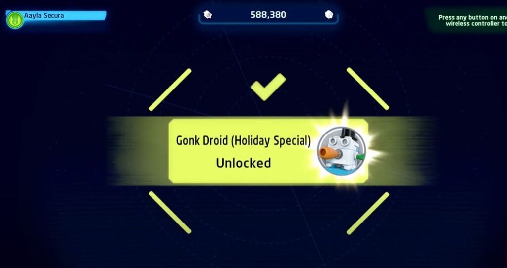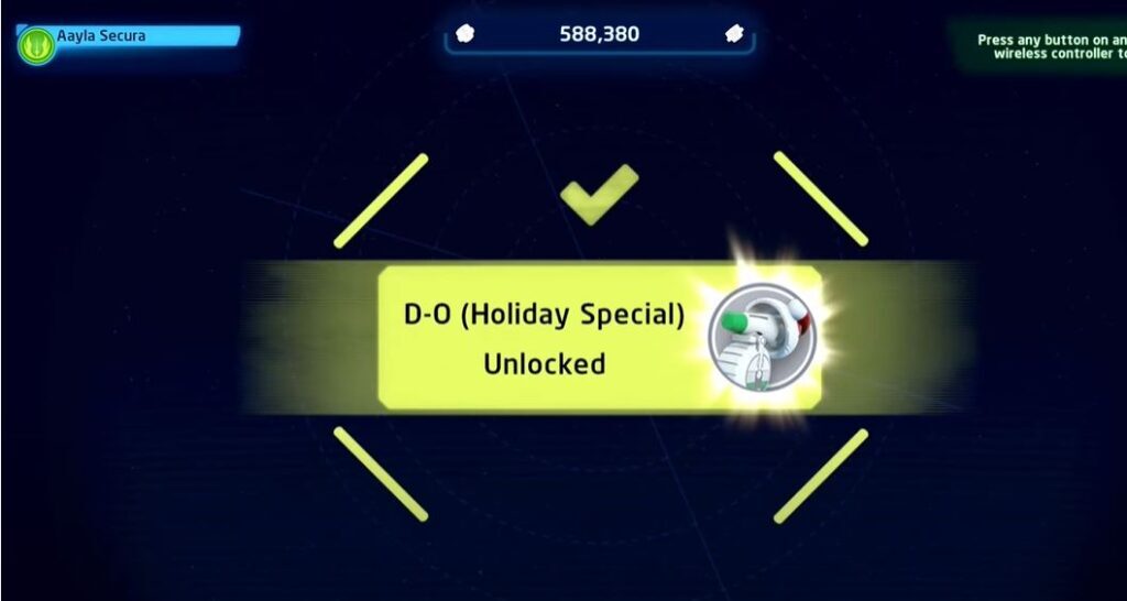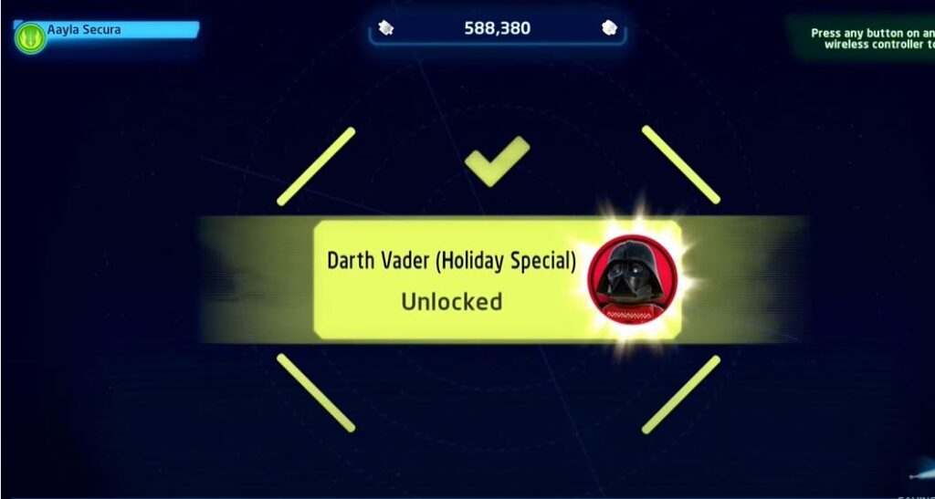 코드를 입력하면 이 휴가 특별 변형 Darth Vader를 나머지 게임에서 사용할 수 있습니다.