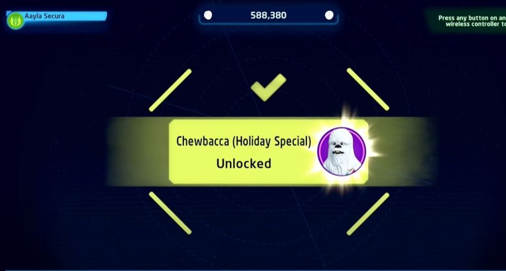 코드를 입력하면 츄바카의 휴일 변형이 잠금 해제되어 게임 전체에서 사용할 수 있습니다.