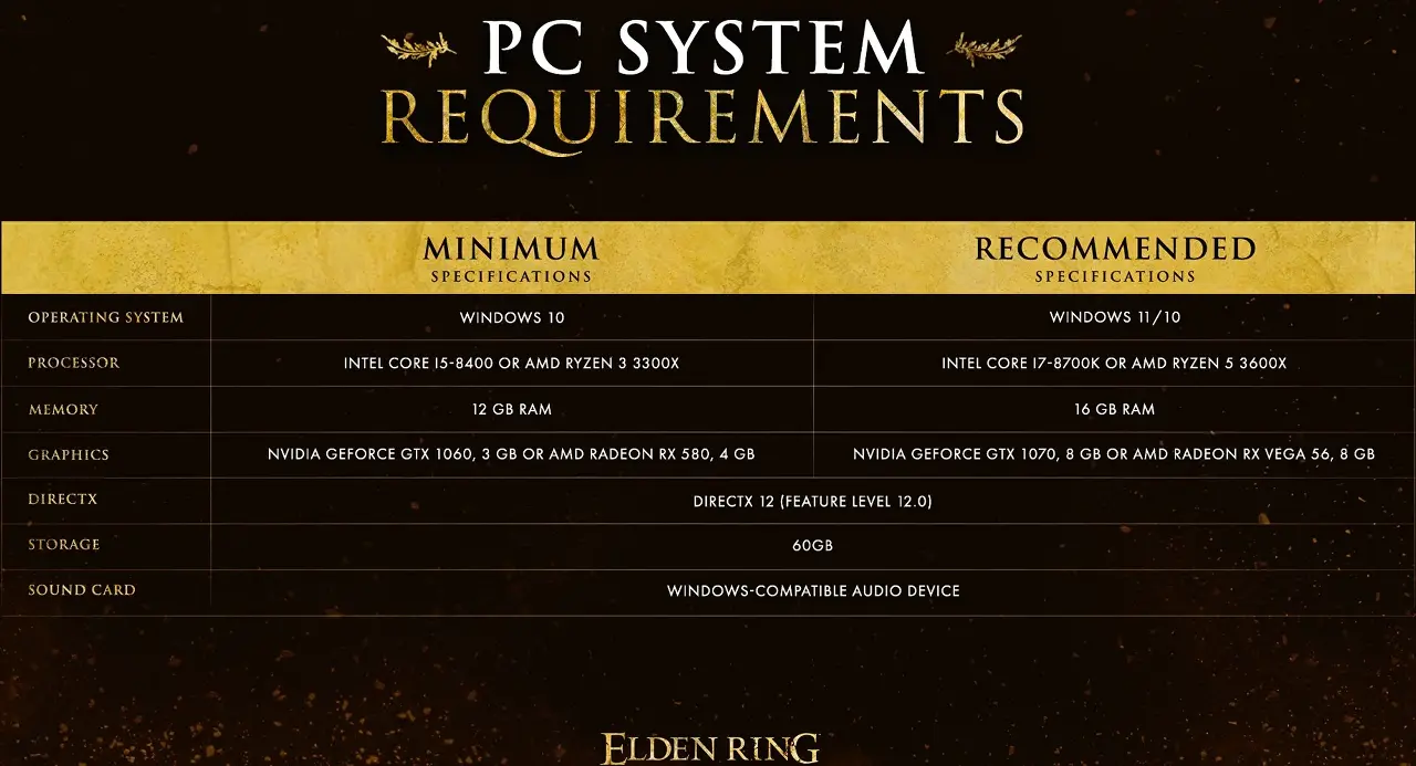 Elden Ring PC 시스템 요구 사항