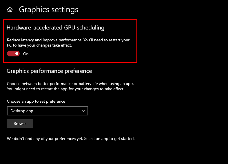 하드웨어 가속 GPU 스케줄링 활성화