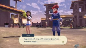 Shinx의 HP를 낮춘 후 인벤토리로 이동하여 Poké Ball을 던져 포획하십시오. 3마리의 포켓몬을 잡으면 베이스캠프에서 Laventon 교수를 만나 사진을 찍어주고 Jubilife Village로 돌아갑니다( 그림34 ). 여행하는 동안 그는 당신의 포켓몬을 마을의 목초지에 보관할 수 있으며 한 팀은 6마리의 포켓몬만 가질 수 있다고 알려줄 것입니다( pictures35and36 ).