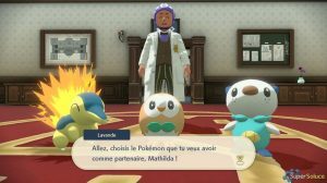 Cyllene의 임무를 수락하면 Laventon 교수가 갤럭시 팀 본부의 메인 로비에서 그를 초대할 것입니다( 그림1 ). 토론이 끝나면 전체 모험 동안 함께 할 첫 번째 포켓몬인 스타터 포켓몬 을 선택해야 합니다 ( 그림 2 ). 접근하여 선택하십시오 ( 그림 3 ).