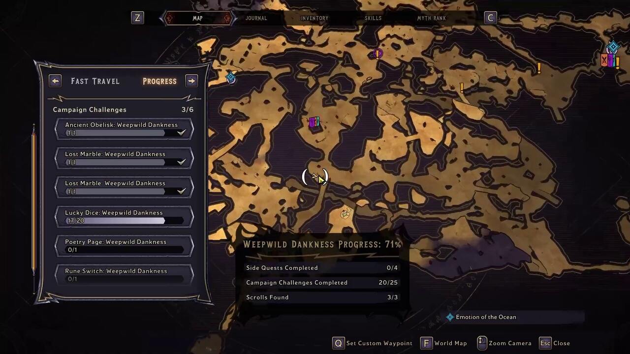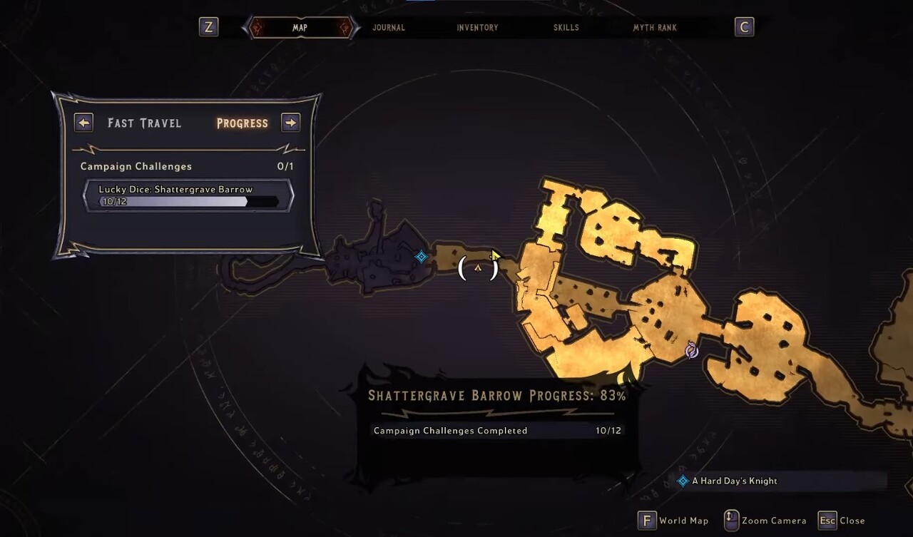 Overworld의 마지막 3개의 Lucky Dice의 경우 아래 그림 위치에서 게임과 사이드 퀘스트를 완료해야 합니다. 사이드 미션은 메인 스토리를 완료한 후에만 사용할 수 있습니다. 이 보조 임무를 완료하면 아래의 행운의 주사위 위치에 필요한 마법의 근접 능력이 부여됩니다.