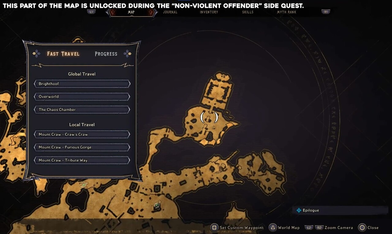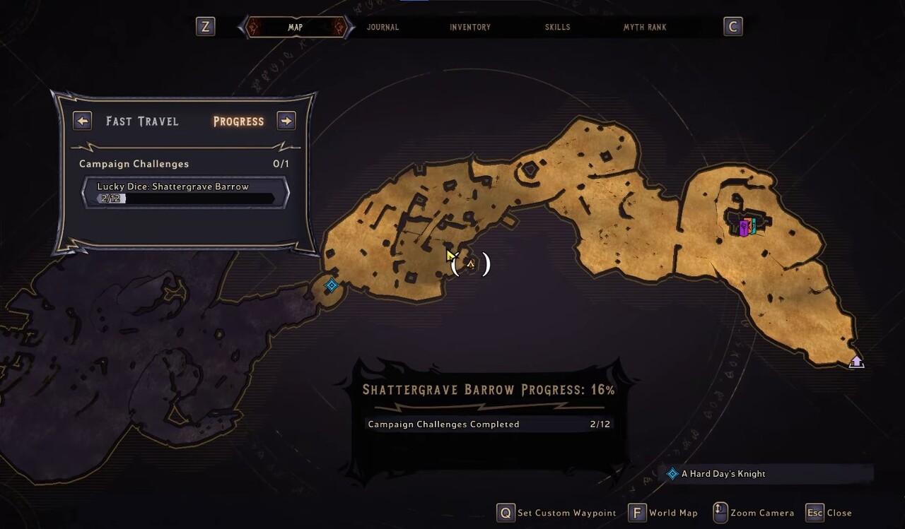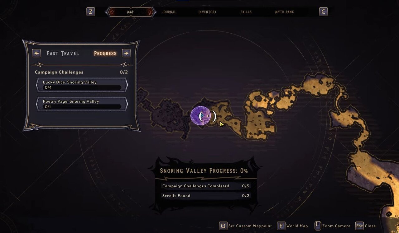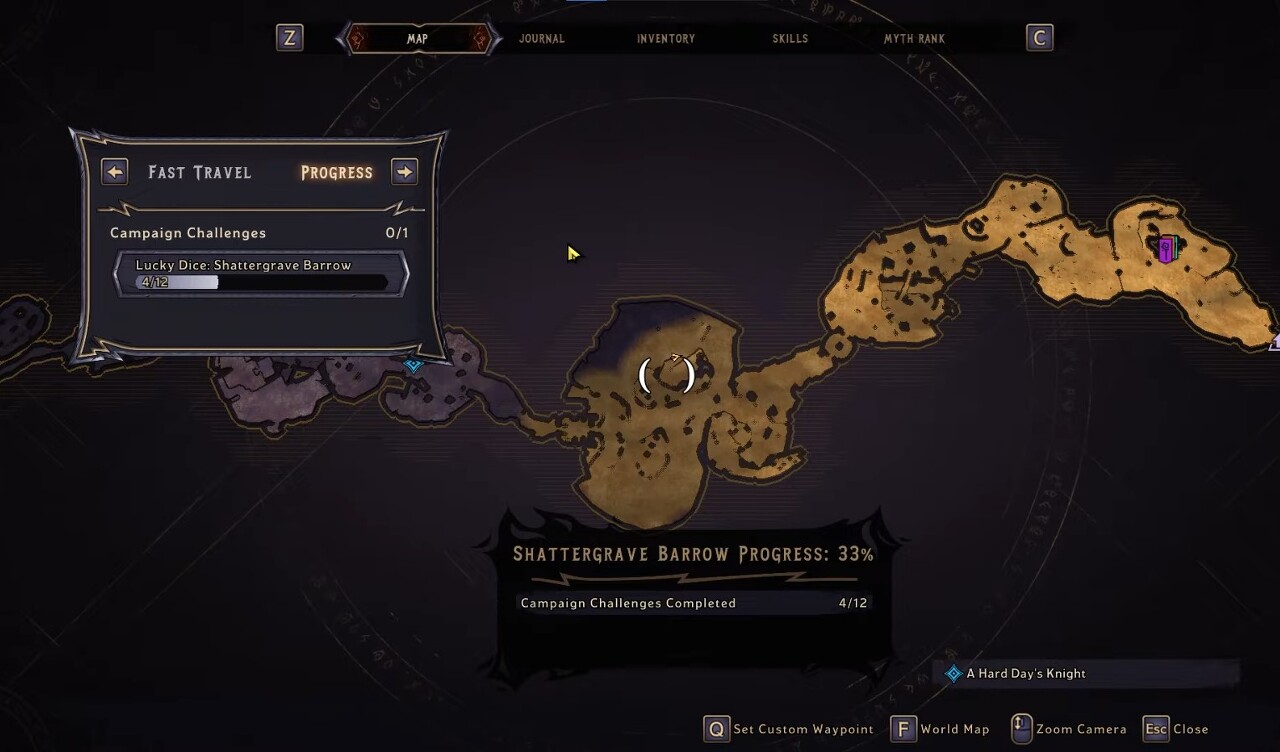 Karnok's Wall을 완료하면 마법의 보라색 게이트를 잠금 해제할 수 있습니다. 지도 위치로 이동하여 마법의 문을 엽니다. 행운의 주사위는 절벽 가장자리 근처의 게이트 너머에 있습니다.