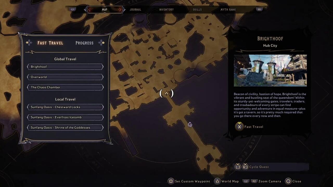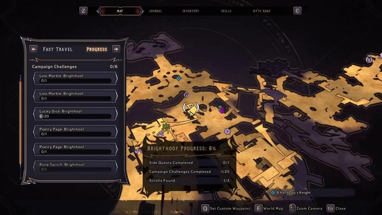 이 행운의 주사위를 사용하려면 Brighthoof로 갔다가 다시 Overworld로 돌아가야 합니다. 이렇게 하면 마법의 다리에서 보조 임무인 '신사 조각 챌린지'가 해제됩니다. 챌린지를 완료하면 새로운 위치로 순간이동합니다. 길 끝에 Lucky Die가 보입니다.