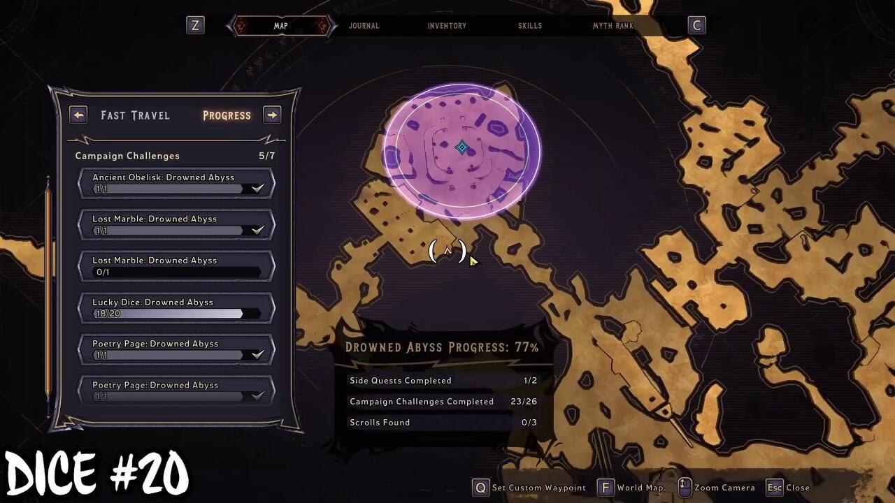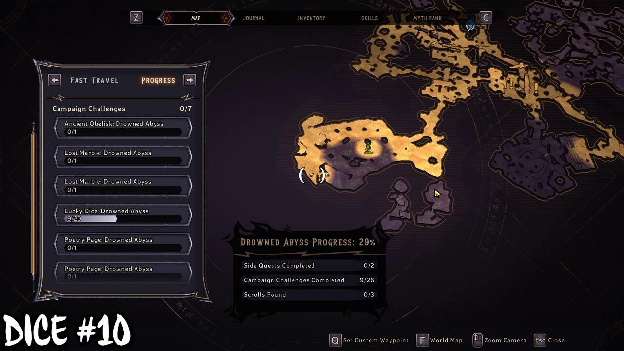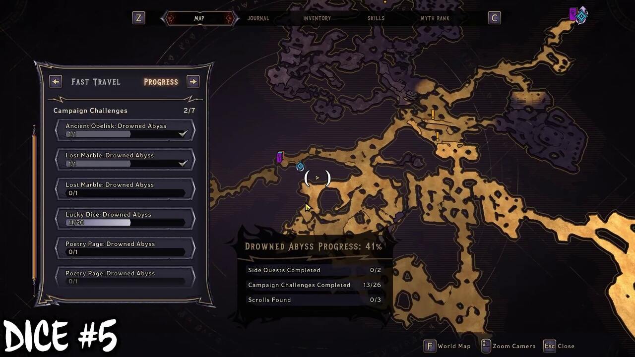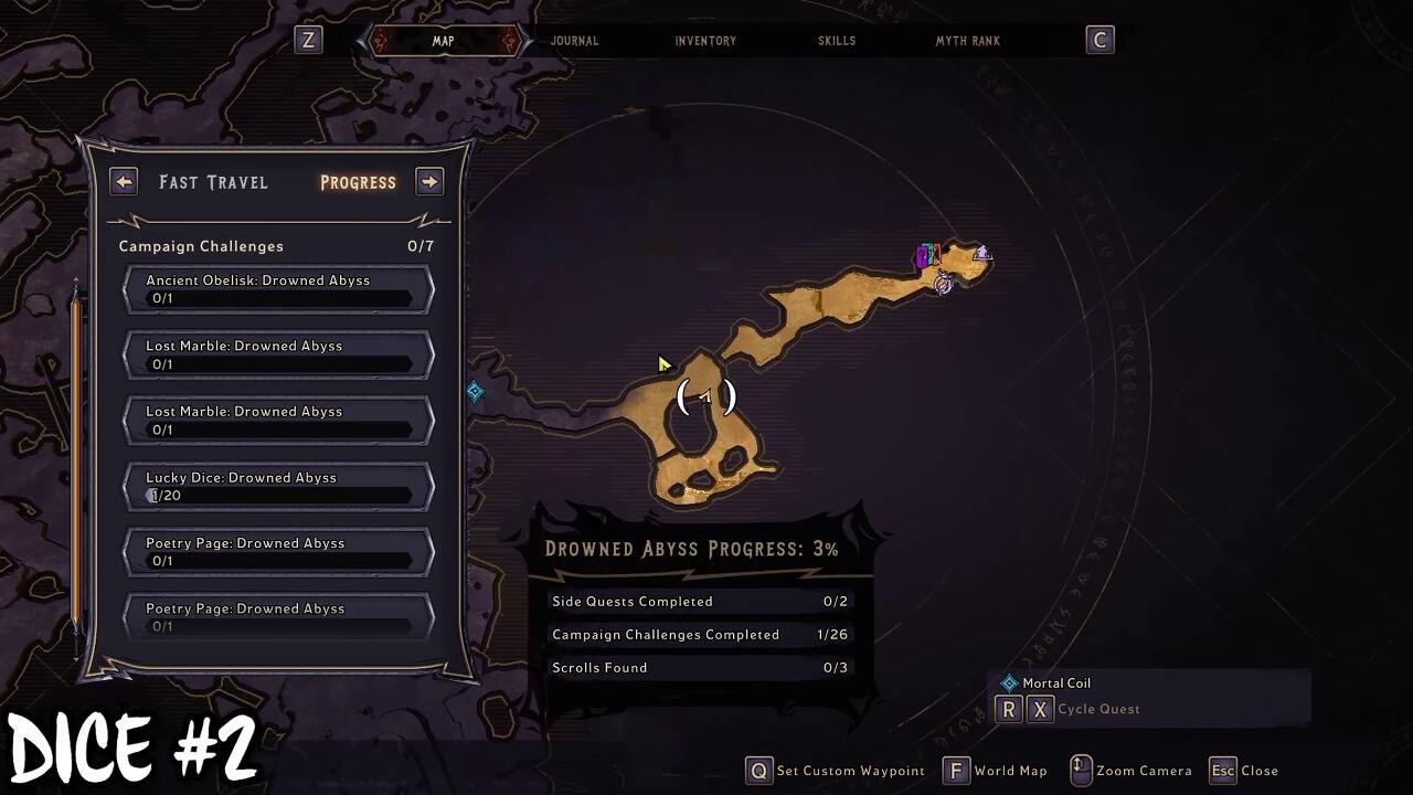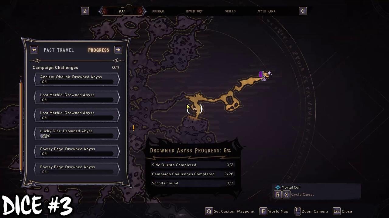 익사한 심연을 완료하면 다리를 생성할 수 있는 능력을 얻습니다. 지도 위치에 도달하면 전방의 절벽에서 Lucky Die를 볼 수 있습니다. 격차를 뛰어 넘을 수 없습니다. 대신 다리를 만들어 행운의 주사위를 모으십시오.