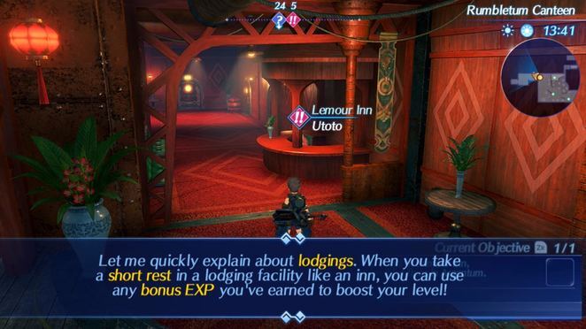 여관 입구 카운터에서 Utoto와 이야기하고 100G에 대한 짧은 휴식을 선택하십시오. 휴식을 취하기로 결정했다면 렉스의 캐릭터 레벨을 올릴 수 있을 것입니다.