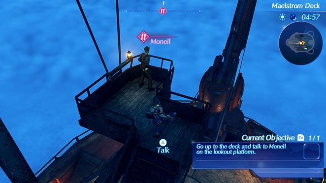 마지막으로, 다른 모든 승무원과 대화를 마친 후에는 Monell과 대화해야 합니다. 그는 일련의 계단의 맨 꼭대기에 있는 전망대의 Maelstrom Deck에서 찾을 수 있습니다. 장면을 트리거하기 위해 교대를 시작하는 데 동의합니다.