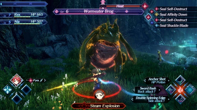 이제 Blade를 얻었으므로 전투에서 시험해 봐야 합니다. 이 만남은 본질적으로 Blade와 Driver를 함께 사용하는 방법에 대한 하나의 긴 튜토리얼입니다. 가장 중요한 것은 파이라와 렉스를 연결하는 에너지 광선에 눈을 맞추는 것입니다. 이것은 그들의 친화력을 나타냅니다. 전투 중에는 친밀도를 높이려면 Pyra와 가까이 있는 것이 중요합니다. 파이라와 가까울수록 친화력이 좋아지고 전투 아츠의 재충전 속도가 빨라집니다.