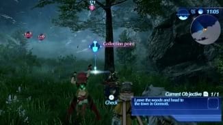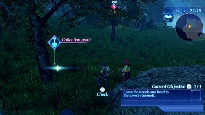 Gramps가 있는 장면을 따라가면 그가 막고 있는 지역을 통과하여 동쪽으로 계속 갈 수 있습니다. Clap Bunnit 적 한 쌍과 Bright Flyer가 앞 길에 한두 마리 있습니다. 진행 하면서 게임에서 가리키는 첫 번째 수집 지점 을 만나게 됩니다. 이것과 상호 작용하여 맛있는 것을 얻으십시오.