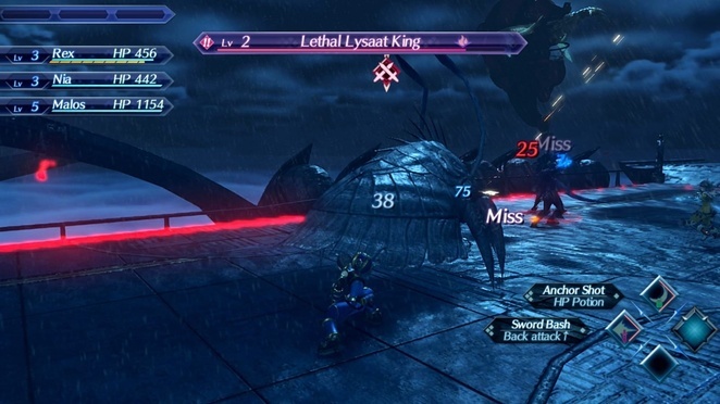 이 싸움을 시작하자마자 게임은 적의 약점을 어디에서 찾을 수 있는지, 파티 게이지를 사용하여 쓰러진 파티원을 소생시키는 방법을 알려줄 것입니다. 또한 서로 다른 캐릭터의 특수 공격을 함께 연결하여 블레이드 콤보를 수행하는 방법에 대한 개요와 예도 제공됩니다.