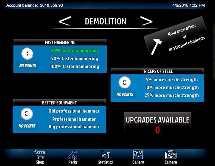 House Flipper 에서는 Perks를 사용하여 작업의 속도와 품질을 높일 수 있습니다. 주어진 카테고리에서 일정량의 활동을 완료하면 분배할 포인트를 받게 됩니다. 작업의 속도와 효율성을 높이려면 포인트를 즉시 사용해야 합니다. 능력은 3개의 하위 범주로 나뉘며 각 하위 범주에서 잠금 해제할 수 있는 3개의 특전이 있습니다.