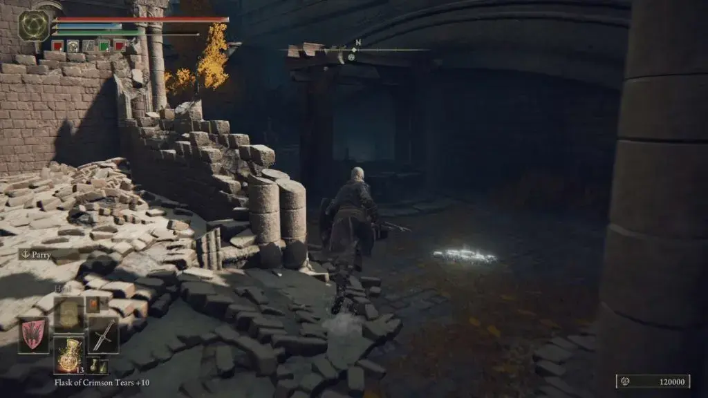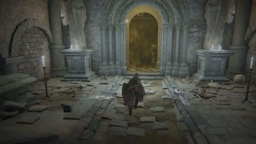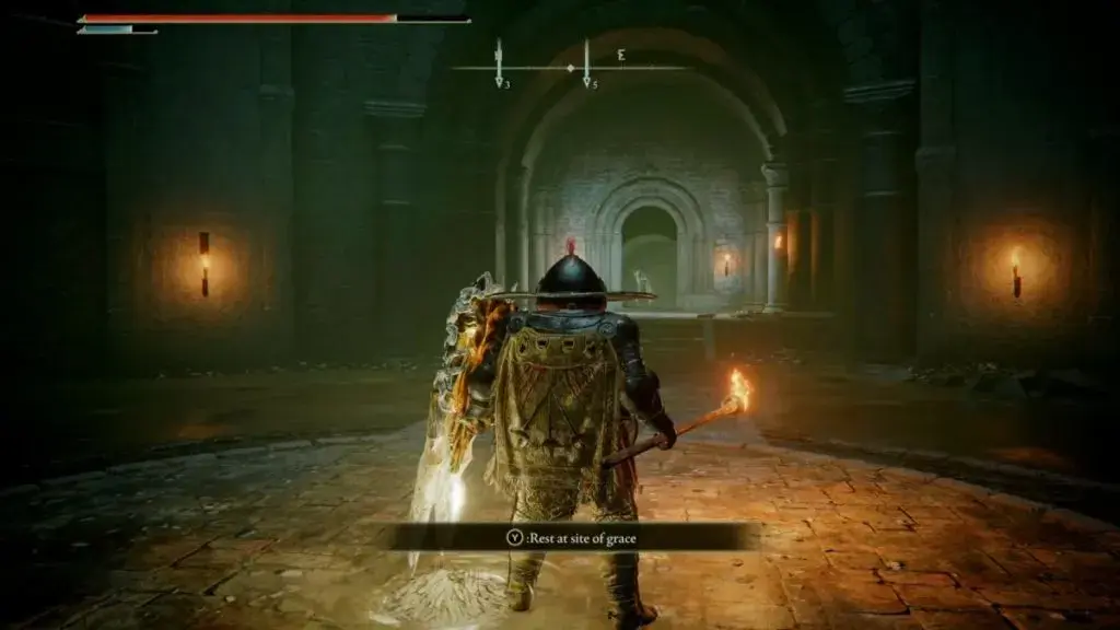 - 입구 안으로 들어가서 우회전하여 Leyndell Catacombs Site of Grace를 활성화하십시오.