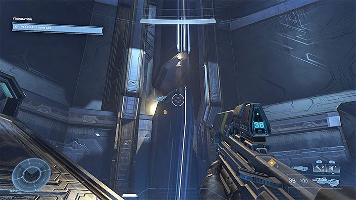 샤프트로 점프(마스터 치프는 더 높은 곳에서 점프해도 안전하게 착지할 수 있습니다). 다음 위치에서 Grappleshot을 사용하여 다음 선반에 도달하십시오. "심연"에 빠지지 않도록 해야 합니다. 그러면 영웅이 죽습니다. 탈출은 컷신으로 끝납니다.