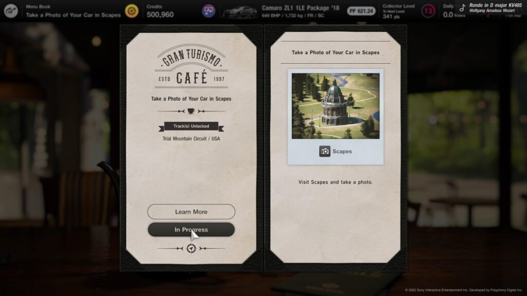 그란 투리스모™ 7 카페 메뉴북