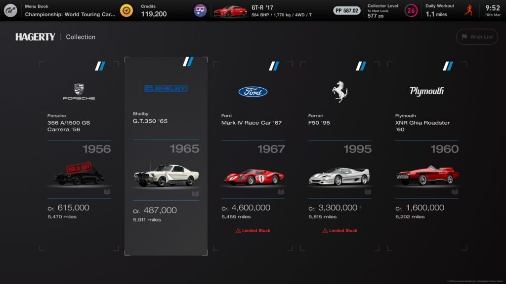 'Limited Stock'이라는 차가 보이면 중고차 판매점에서 사라진다는 뜻이므로 원하는 것이면 빨리 가는 것이 좋습니다. 작은 책 아이콘이 파란색이면 해당 자동차를 이미 소유하고 있는 것입니다.