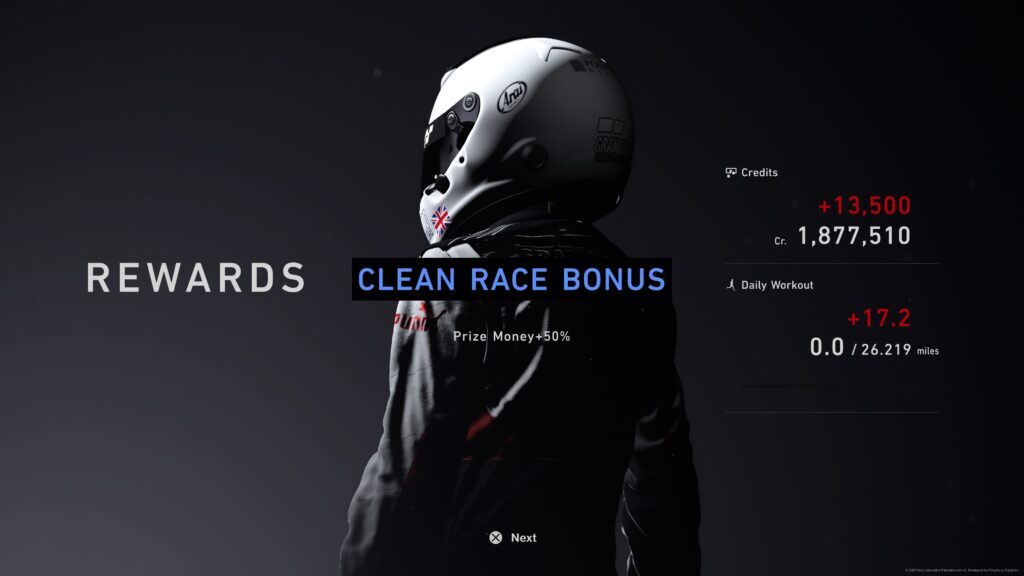 싱글 플레이어 또는 온라인 멀티 플레이어에서 수행하는 모든 레이스에서 트랙에 머물면서 상대방과 충돌하지 않으면 상금에 추가로 50%를 추가하는 깨끗한 레이스 보너스를 받게 됩니다.
