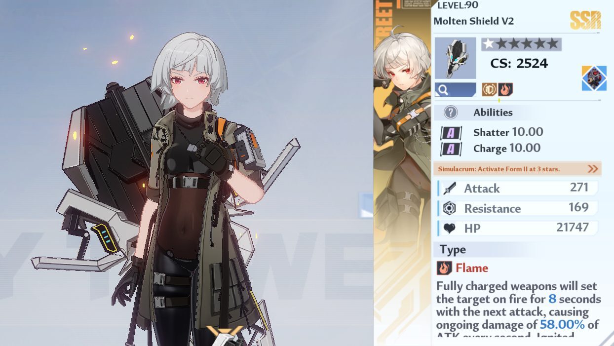 더 탱크 중심의 플레이 스타일을 플레이하는 것에 신경 쓰지 않는다면 Huma 는 놀라운 선택입니다. 그녀는 아마도 타워 오브 판타지 에서 가장 과소 평가된 시뮬라크르일 것입니다 . 그녀의 Fission 기술 덕분에 Huma는 실제로 Tower of Fantasy 의 어떤 캐릭터보다 이론적인 쉴드 브레이크를 가지고 있습니다. 이것은 당신이 공격을 잘 피하는 것에 달려 있지만 그녀의 잠재력은 분명합니다. 추가 보너스로, 그녀의 Molten Shield V2는 잠재력을 최대한 발휘하기 위해 최대 1*까지만 발전하면 됩니다.