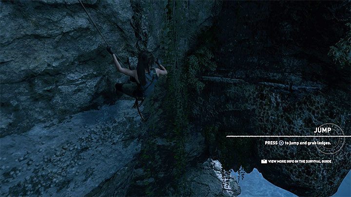 마지막(지금까지) 등반 벽을 따라 가능한 한 오른쪽으로 이동합니다. 로프를 사용하여 완전히 내려갑니다. Lara는 기본적으로 새 선반에서 너무 멀리 떨어져 있지만 로프를 흔들 면서 새로운 움직임을 테스트할 수 있습니다 . Lara가 손을 앞으로 내밀어 행동이 성공할 것이라는 신호를 보낸 후에만 점프하기로 결정합니다. 이미 폐허에 들어갈 수 있습니다.