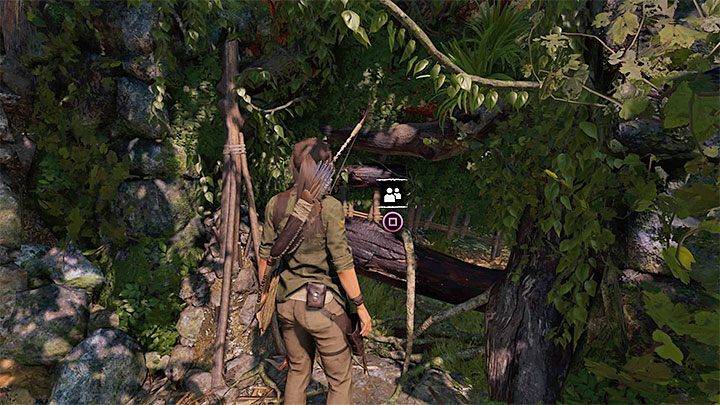 활 덕분에 라라는 정글의 이 부분을 떠날 수 있습니다. 정글의 첫 번째 단계의 서쪽 부분을 탐험하세요. 위에 표시된 장소에 도달하십시오. 반대편 로프 코일에 로프 화살(라라가 자동으로 선택)을 쏘십시오. 따라서 두 극이 결합됩니다. 줄을 잡고 반대편으로 갑니다.