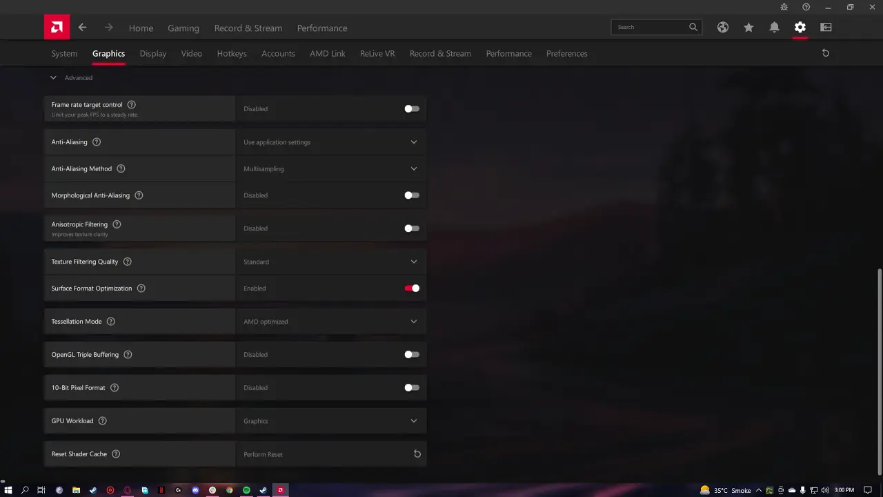 - 마지막으로 테셀레이션 및 셰이더 캐시 옵션을 선택하고 둘 다 AMD 최적화 모드로 설정합니다.