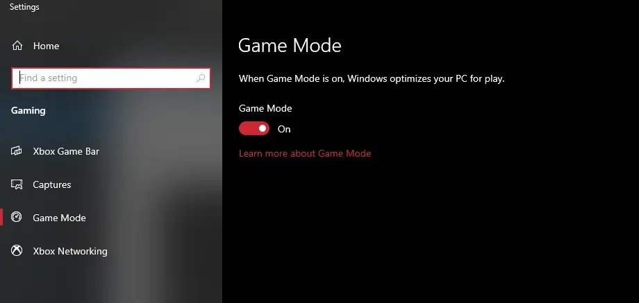 여기 있는 동안 게임 모드 설정 메뉴도 조정할 수 있습니다. 여기 아래 이미지와 같이 관련 설정 탭 바로 아래에서 볼 수 있습니다.