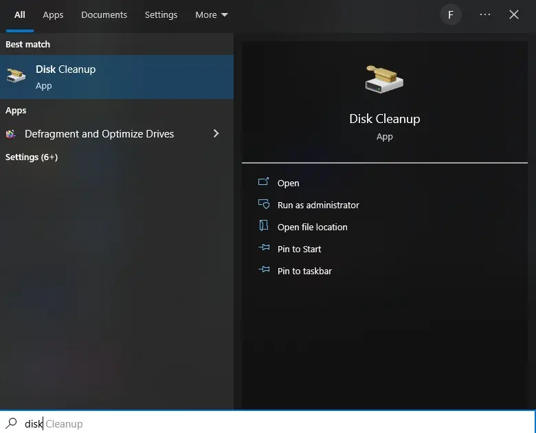 - Enter 키를 누르고 디스크 정리를 실행합니다.