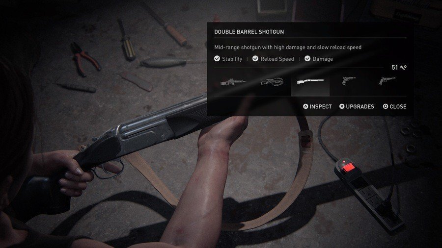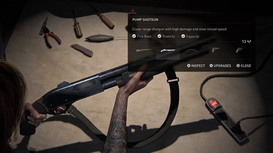 펌프 산탄총 은 다운타운 챕터 동안 Westlake Bank 금고에 있습니다. 이 무기에 액세스하는 방법에 대한 자세한 내용은 다음을 참조하세요 . Last of Us 2: Westlake Bank 금고 문을 여는 방법 . 예비 부품을 사용하여 다음 업그레이드를 구입할 수 있습니다.