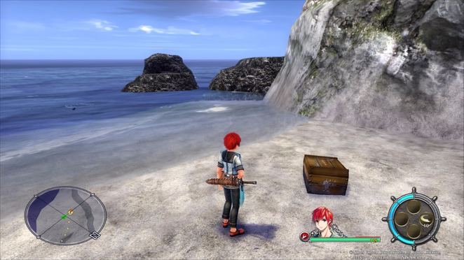 해변에 휩쓸려 가다 보면 해변의 모래에서 녹슨 칼이 튀어나와 있는 것을 볼 수 있습니다. 그것을 잡는 즉시 Worgles라는 야생 개 생물의 공격을 받을 것입니다. 그들을 물리 치면 Adol은 새로운 기술을 배우고 게임은 기술을 소개하는 기회를 사용합니다.