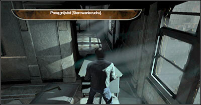 특정 아이템을 획득할 수 있다는 메시지를 무시하십시오. 이 개체 중 어느 것도 현재 귀하에게 유용하지 않습니다. 왼쪽 복도로 진행합니다. 작은 책상이 길을 막고 있습니다(화면). 이 물체에 접근하고 동작 키를 누르십시오. 책상을 자신 쪽으로 당기기 시작합니다. 이 물건을 근처 어딘가에 두고 새 방으로 가십시오.