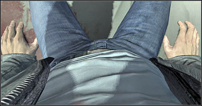 주인공이 의식을 회복하기 시작하기 때문에 이미지가 흐릿하다는 사실을 무시하십시오. 이 시간을 사용하여 배경에서 대화를 듣습니다. 마우스로 살짝 둘러볼 수도 있습니다. 나쁜 놈 중 하나가 곧 당신에게 접근할 것입니다. 그가 하는 말을 들어라. 당신은 그의 얼굴을 볼 수 있도록 마우스를 사용하여 올려다보아야 합니다(화면).