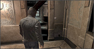 거울 오른쪽에 작은 발코니가 있고 그곳으로 가야 합니다. 분명히 균형을 잃고 넘어지기 쉽기 때문에 여기에서 매우 조심해야 합니다. 화면 상단으로 이동하여 우회전하면 엘리베이터(화면) 위에 서게 됩니다. 새로운 컷신을 감상하세요.