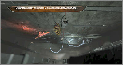 여기서의 목표는 로프 위에서 스윙을 시작하는 것입니다. 측면 이동 키(기본적으로 A 및 D)를 눌러 이를 수행할 수 있습니다. 이렇게 하면 큰 전기 상자를 왼쪽으로 밀 수 있습니다. 이 개체는 그곳(화면)에서 차단되어야 합니다. 계획대로 모든 것을 수행했다면 부상을 입을 염려 없이 아래로 미끄러져 내려갈 수 있을 것입니다.