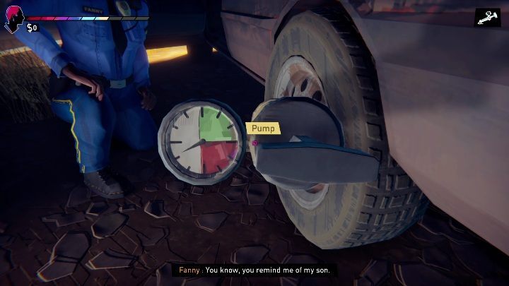 Fanny 경찰관은 길에서 마주하게 될 다음 캐릭터입니다. 그녀가 바퀴를 교체하는 것을 도울 가치가 있습니다. 이 작업은 단순히 기존 휠의 나사를 풀고 교체하고 올바르게 팽창시키는 작업을 수반합니다. 바퀴를 부착하면 여성과 대화가 가능합니다. 그녀는 더 이상 당신을 돕지 않을 것입니다 . 당신의 임무는 혼자서 계속 걸어가는 것입니다.