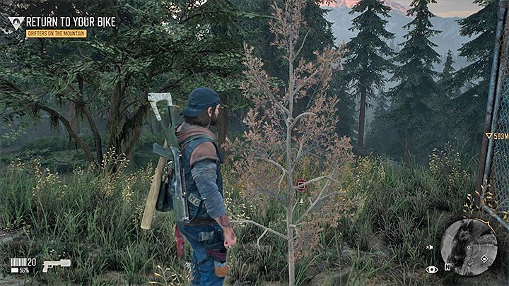 해설 : 삼나무 묘목은 세계 지도의 모든 지역에서 찾을 수 있습니다. 그림에 있는 것과 같은 작은 나무를 보십시오. 미니맵에서 나무(및 기타 식물)가 강조 표시되는 덕분에 매발톱 스킬을 추가로 획득할 수 있습니다. Deacon이 매우 빠르게 사용할 수 있기 때문에 항상 석궁 볼트를 가득 채워 보관해야 합니다.