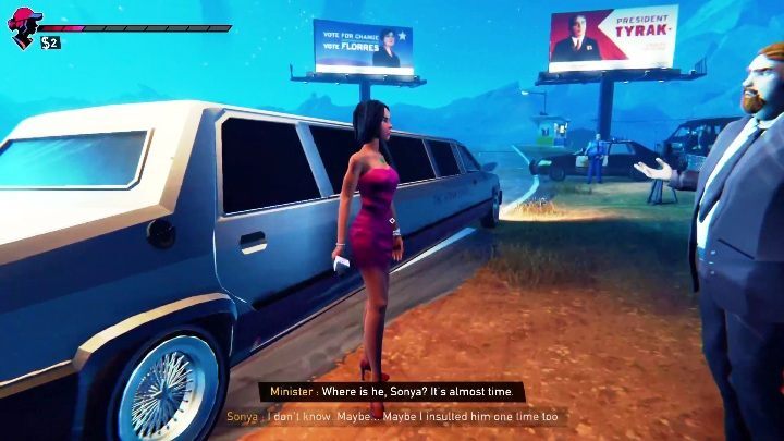 어느 시점에서 Sonya는 화장실에 두고 온 지갑 을 다시 가져오라고 요청할 것입니다. 당신은 그것을 집어 들고 당신이 있던 곳으로 돌아가야 합니다 . 하지만 소냐는 더 이상 거기에 없습니다. 그녀에 대해 걱정하지 마십시오. 그녀는 리무진을 타고 돌아왔습니다. 그녀에게 지갑을 돌려주고 다시 밖으로 나간다.