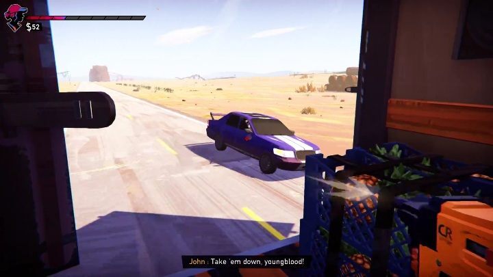 히치하이크를 하기로 결정했다면 John 을 만나게 될 것 입니다. 그는 당신의 도움이 필요합니다. 도중에 공격을 받게 됩니다. 총을 들고 싸울 준비를 하세요. 당신을 공격하는 차에 불을 질러 도로에서 몰아내세요 . 총격전이 끝난 후에야 John의 트럭을 떠날 수 있습니다.