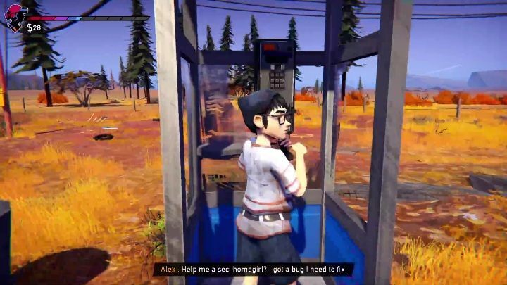 가는 길에 알렉스 를 만납니다 . 그가 당신에게 말을 하게 하려면 전화 부스의 전원을 꺼야 합니다. 대화를 하는 동안 많은 흥미로운 것들을 배우게 될 것입니다. 결정은 당신에게 달려 있지만, 당신의 선택은 일부 줄거리에서 중요한 캐릭터의 행동에 영향을 미칩니다. 대화가 끝나면 계속 진행할 수 있습니다. Alex가 택시 네트워크를 해킹하여 무료로 더 진행할 수 있습니다 .