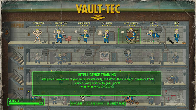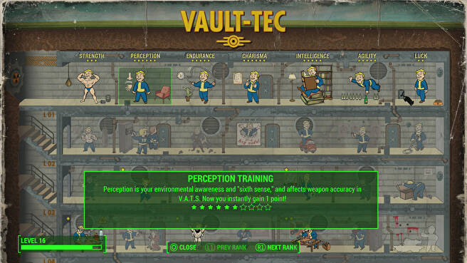 또한 위의 범주 중 어느 것도 그 자체로 특혜가 아님을 알아야 합니다. 이것들은 당신의 속성이지만, 당신이 한 범주 또는 다른 범주에서 더 강할수록 더 많은 특전을 선택하고 혜택을 받을 수 있습니다. 예를 들어, Vault-Tec 친구에게 힘 5가 되고 싶다고 말하면 힘 레벨 05에서 제공되는 특전을 장비할 수 있습니다.