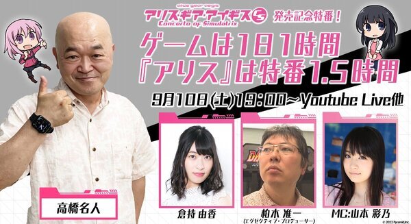 2022년 9월 10일 19시~전송 「앨리스・기어・아이기스 CS 발매 기념 특별번호!게임은 하루 1시간『앨리스』는 특별번호 1.5시간」 상세