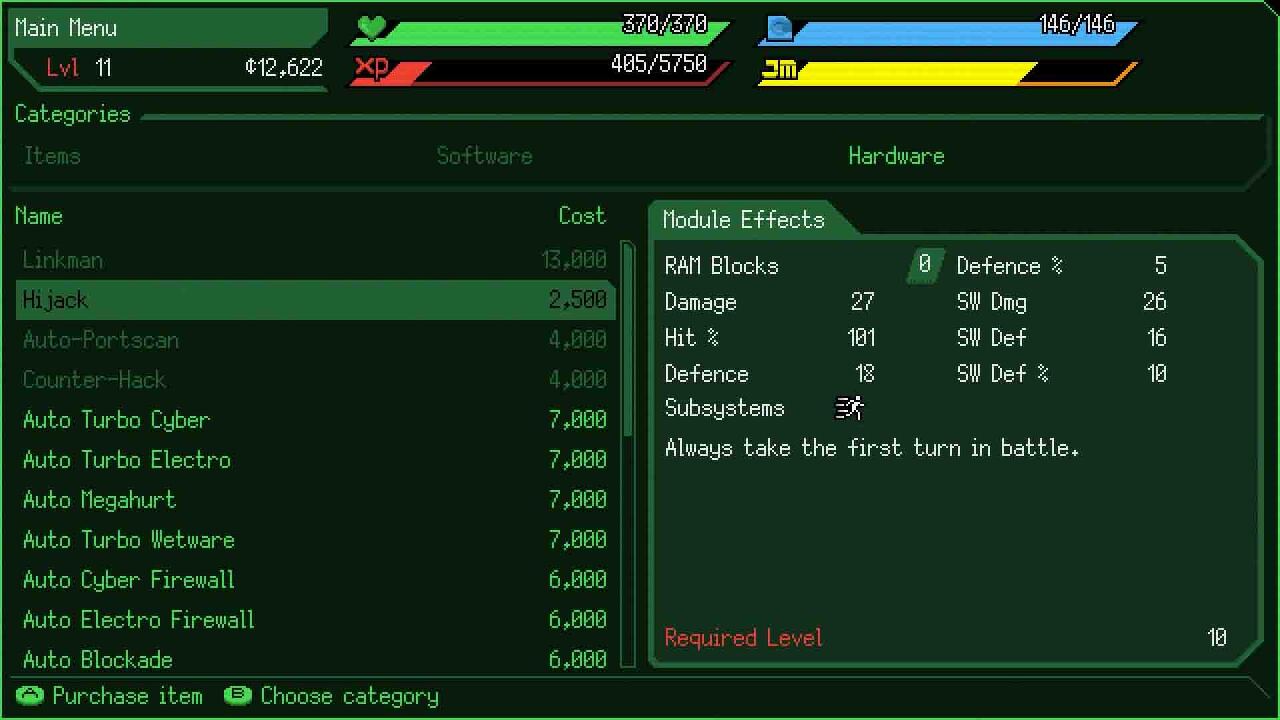이것을 설명하기 위해 Jack Move 가이드가 필요하지 않을 수도 있지만 분명히 합시다. 소프트웨어는 이 RPG에 해당하는 옛날 파이널 판타지 스타일의 마법에 해당하는 반면 하드웨어는 구매하여 세 개의 확장 슬롯 중 하나에 넣을 수 있습니다. 그것은 당신의 핵심 존재를 변화시킵니다.더 나은 방어력을 제공하는 Armor 칩이나 소프트웨어 부서에서 더 많은 옵션을 제공하는 단순한 RAM + 모듈을 얻을 수 있지만 어느 쪽이든 Jack Move는 아이템으로 가득 찬 상점으로 매우 일찍 문을 열 수 있습니다. 압도적.Jack Move 가이드를 통해 게임 시간을 최대화하기 위해 구매할 소프트웨어, 하드웨어 및 항목을 알려드립니다.