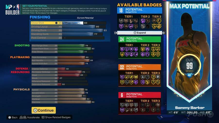 이 새로운 세대의 포인트 가드 빌드 는 적절한 주변 방어와 놀라운 배지 잠재력을 갖춘 슈팅 및 플레이메이킹 반신입니다. 이 빌드는 최대 99 OVR 등급 에 도달할 수 있으며 18 마무리 배지 포인트 , 24 슈팅 배지 , 22 플레이메이킹 배지 포인트 및 6 방어/ 리바운드 배지 포인트 를 포함하여 70 배지 포인트 로 업그레이드할 수 있습니다 .