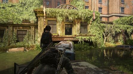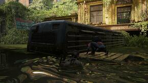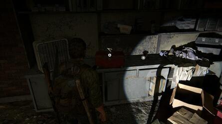 Ellie가 방금 다리를 떨어뜨린 트럭 트레일러를 헤엄쳐 보세요. 다른 Rivers Café에 있을 것입니다. 귀중한 보급품을 얻으려면 먼저 아래층을 약탈하십시오. 그런 다음 뒤쪽으로 향하고 뒤쪽의 계단을 올라갑니다.