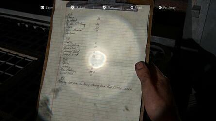 계단을 올라가 엘리의 어려운 대화에 답하세요. 오른쪽에 있는 침실로 가서 모든 보급품을 약탈하십시오. 이 게임에서 항상 잘 준비하는 것이 좋으므로 시간을 내어 무기를 재장전하고 폭탄을 만드십시오.