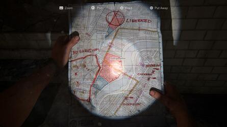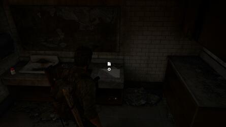 앞서 언급한 Shiv Door 방 내부에서 싱크대 오른쪽에 유물 이 있습니다. 이것은 분실 지역 지도 라고 합니다 . 무기 부품 및 보조 용품을 포함하여 이 방에 있는 다른 모든 보급품을 반드시 챙기십시오 .