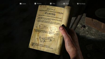 모든 시체가 있는 방 뒤의 위층 침실에서 매트리스 중 하나에서 건강 부목 이라는 훈련 매뉴얼 을 찾을 수 있습니다.