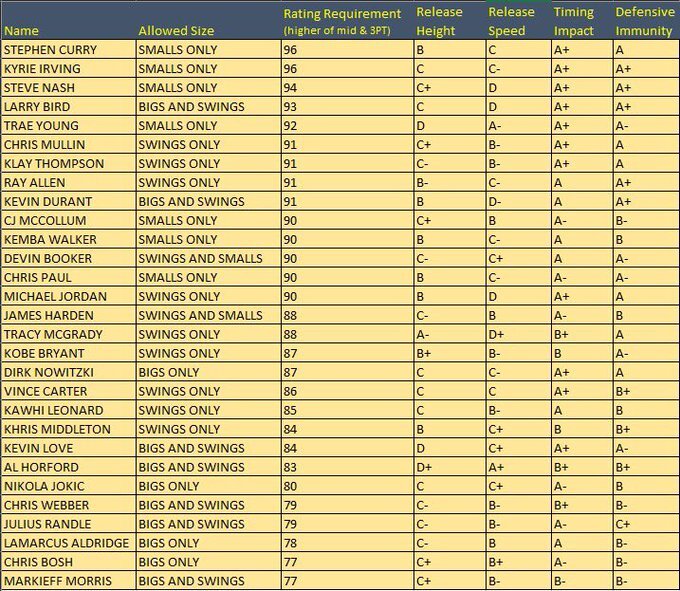 | 제임스 하든 | 80+ | 6'9 | 5'7 | 어느 | 60+ |